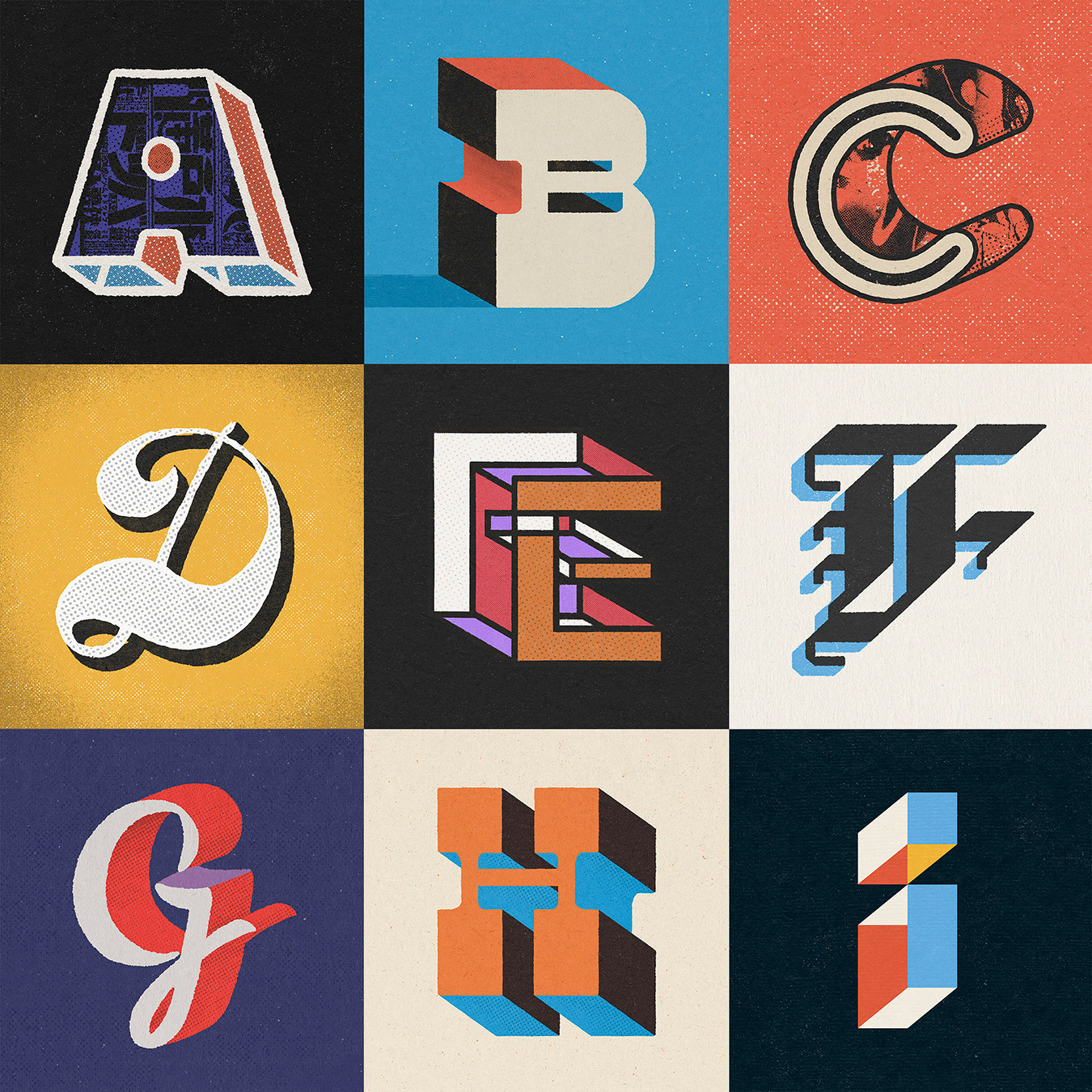 A passion of mine is exploring letter forms, playing with shapes, colours, patterns and textures. Here is a selection from 36 days of type and various lettering projects.